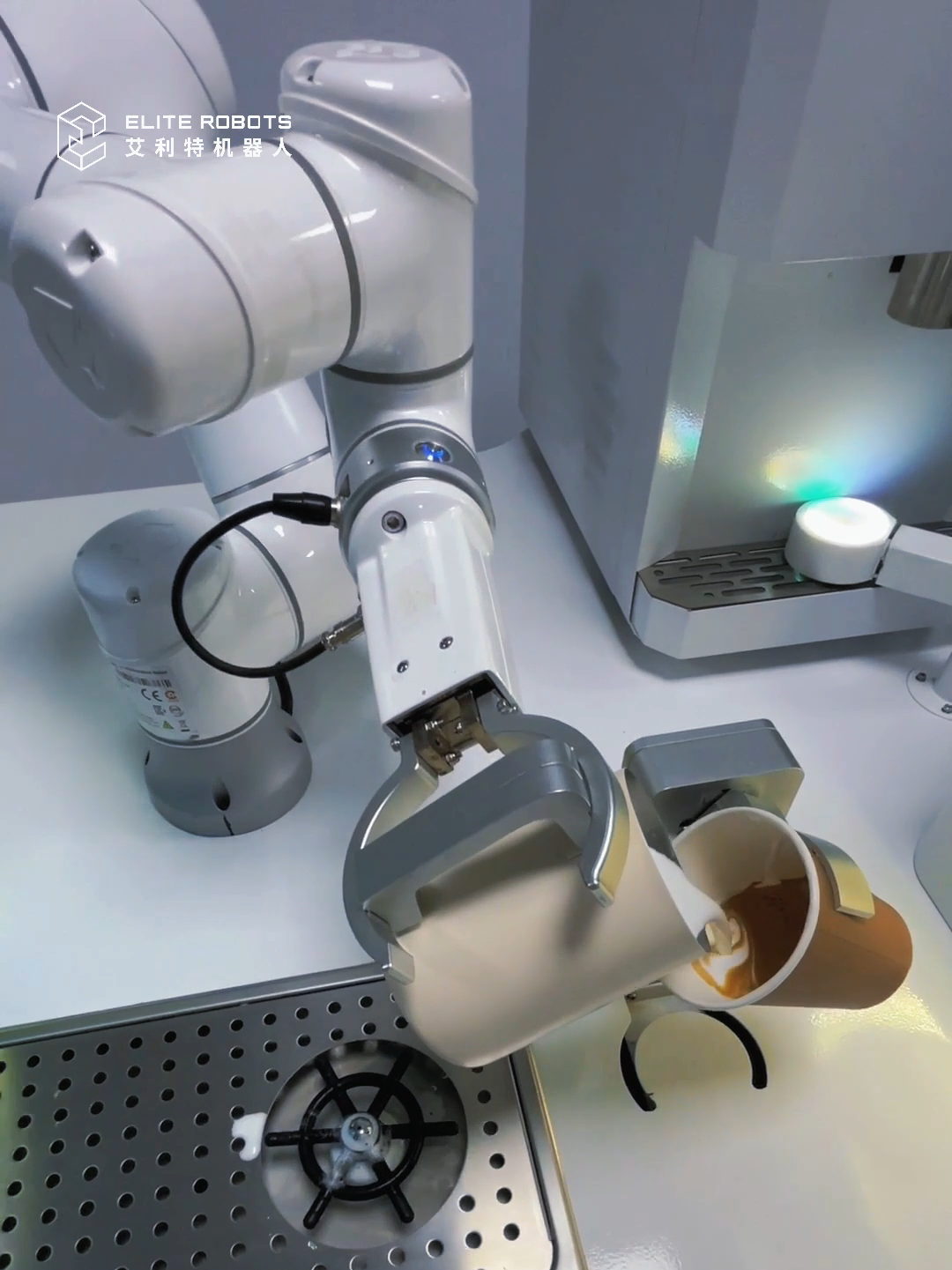除了復刻大師品質的咖啡拉花,艾利特還推出了“煎餅果子機器人”、“茶藝機器人”、“漢堡機器人”、“面條機器人”、“冰淇淋機器人”、“奶茶機器人”等一系列緊跟潮流前沿,具有革命性、顛覆式的協作機器人作品。