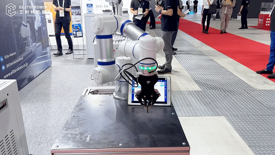 展會現場,艾利特機器人帶來了力控打磨、自動化碼垛、自適應焊接、無線控制等解決方案,展現了協作機器人在多種行業場景中的柔性應用。