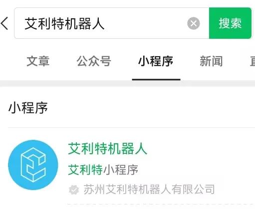 關注微信公眾號“艾利特機器人”,在下方功能菜單中任意點擊子菜單,即可進入小程序。