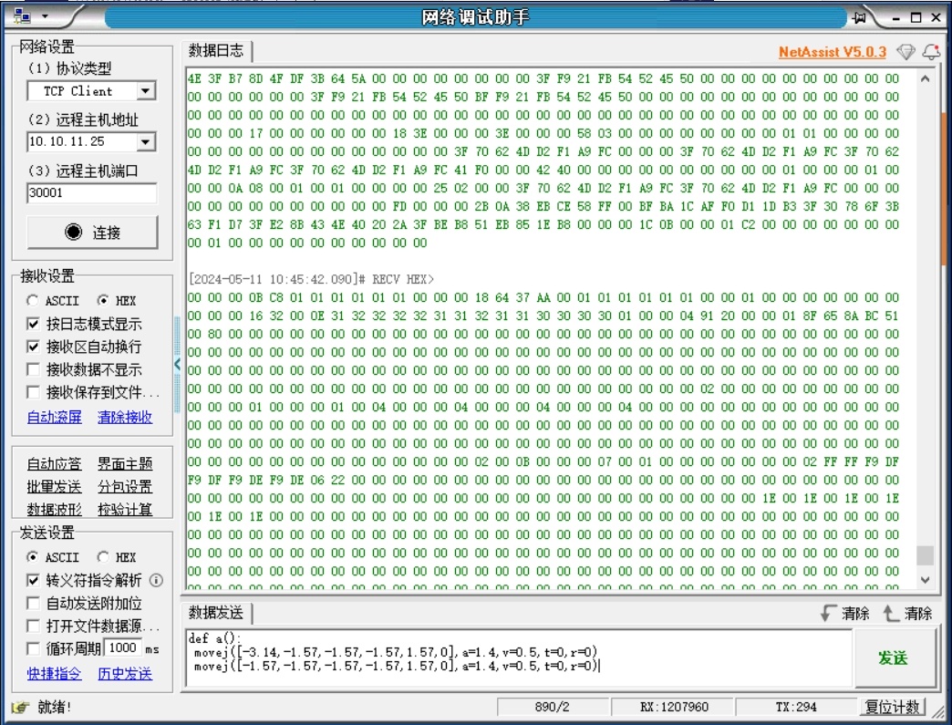 外部設備可以往30001直接發送機器人腳本,機器人處于遠程模式,機器人就會運動。
