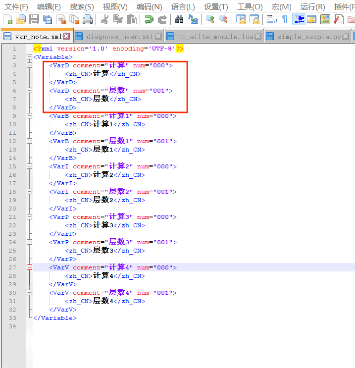 6)diagnose_user.xml文件打開后,根據需要可在文件下進行對應數字、虛擬、模擬量的輸入輸注釋修改