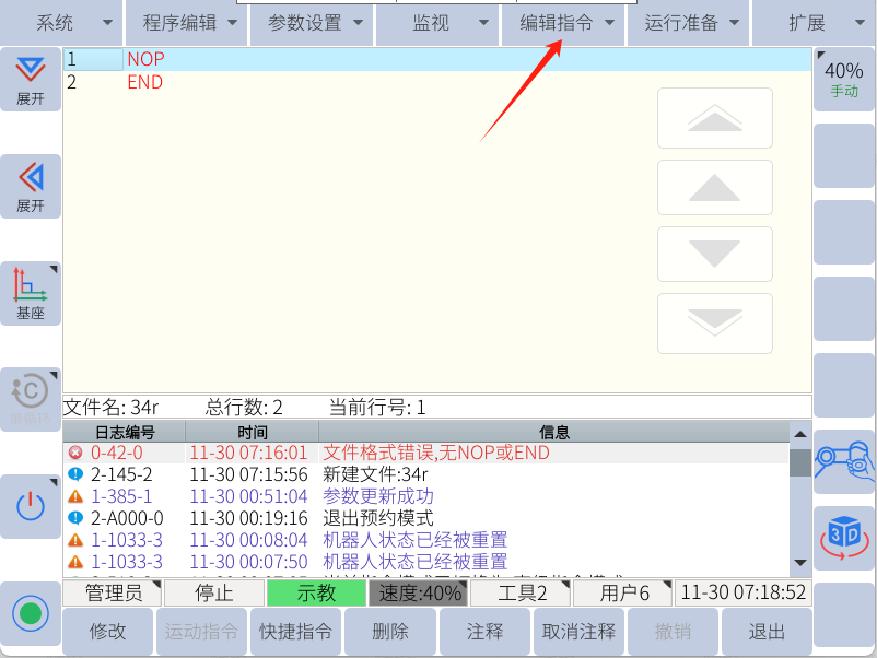 2.進入程序后,編輯指令功能塊亮起,此時所有的JBI指令都在編輯指令里