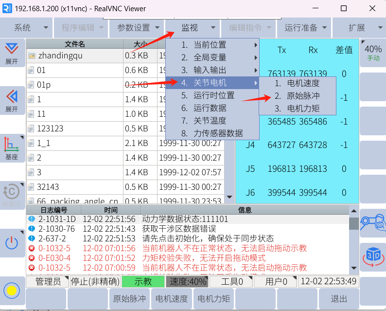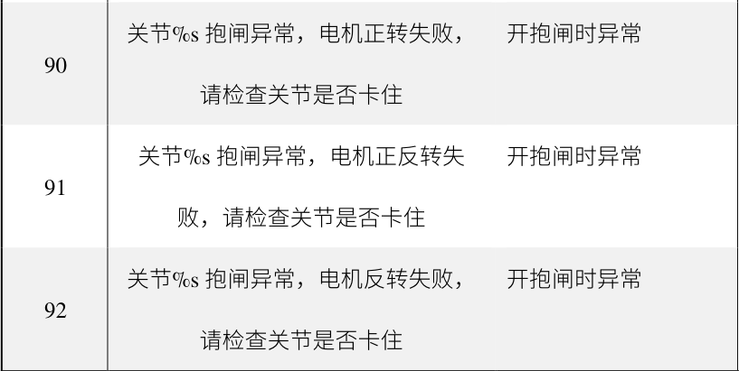 報警原因:關節打開抱閘時,電機會正反微動,確保抱閘系統正常開啟。同時判斷能否正反兩個方向能否正常運動。該故障提示正向或反向無法運動。