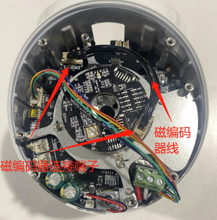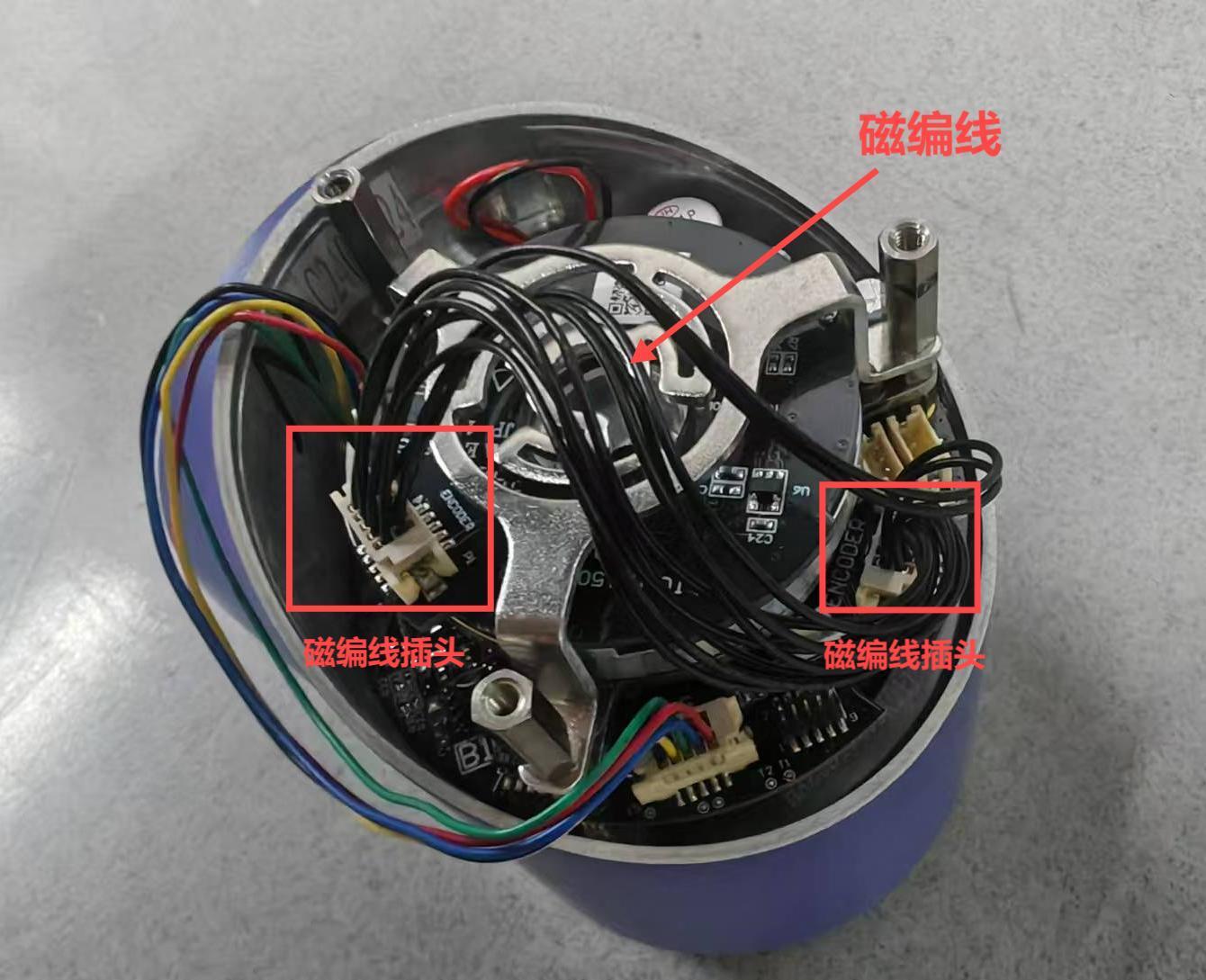 機械臂關機斷電,拆下報警關節端蓋,檢測磁編碼器線纜是否脫落,以及線纜是否斷裂或者被擠壓變形。如果有上述情況,先重新插拔磁編線建議更換磁編線。如果無上述情況,請進行下一步排查。