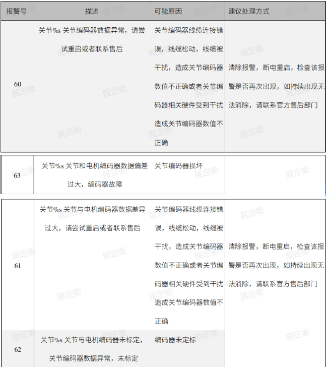 2.  報警代碼:61,關節與電機編碼器數據差異過大