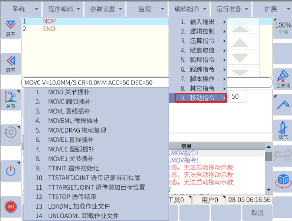 EC機器人MOV與MOVE兩種基礎運動指令區別