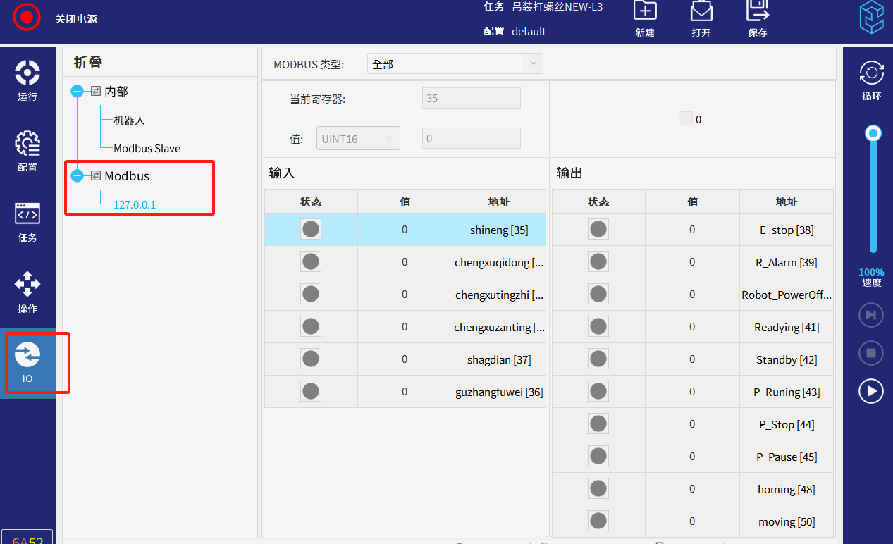 1. 可在左側欄目IO--modbus,查看已配置好信號狀態