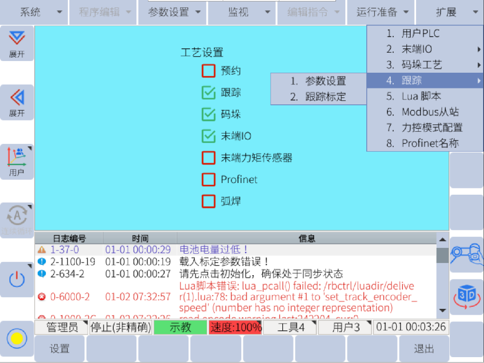 然后可以在 擴展--跟蹤 中設定傳送帶跟蹤參數和跟蹤標定