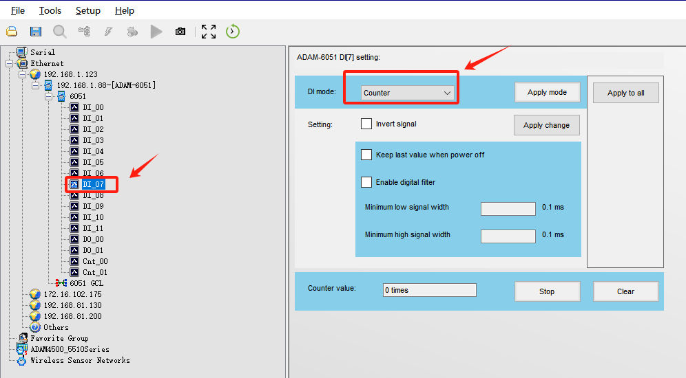 點擊下方6051,會彈出輸入密碼,密碼為00000000,然后依次配置下列接口類型,完成后點擊后面Apply mode.