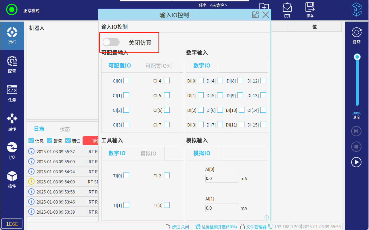 等指令,可以通過模擬IO輸入控制插件,來模擬輸入的信號,以此滿足程序運行的條件。
