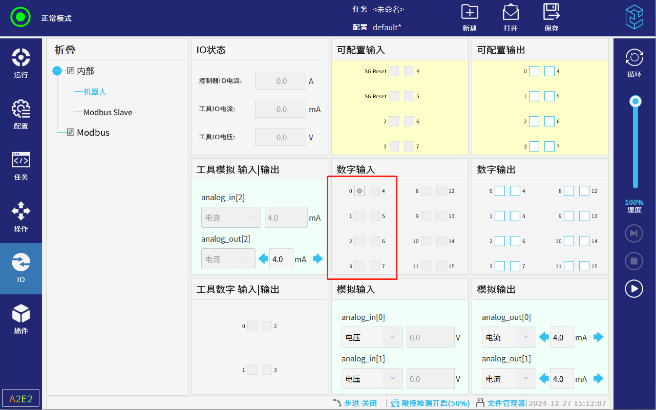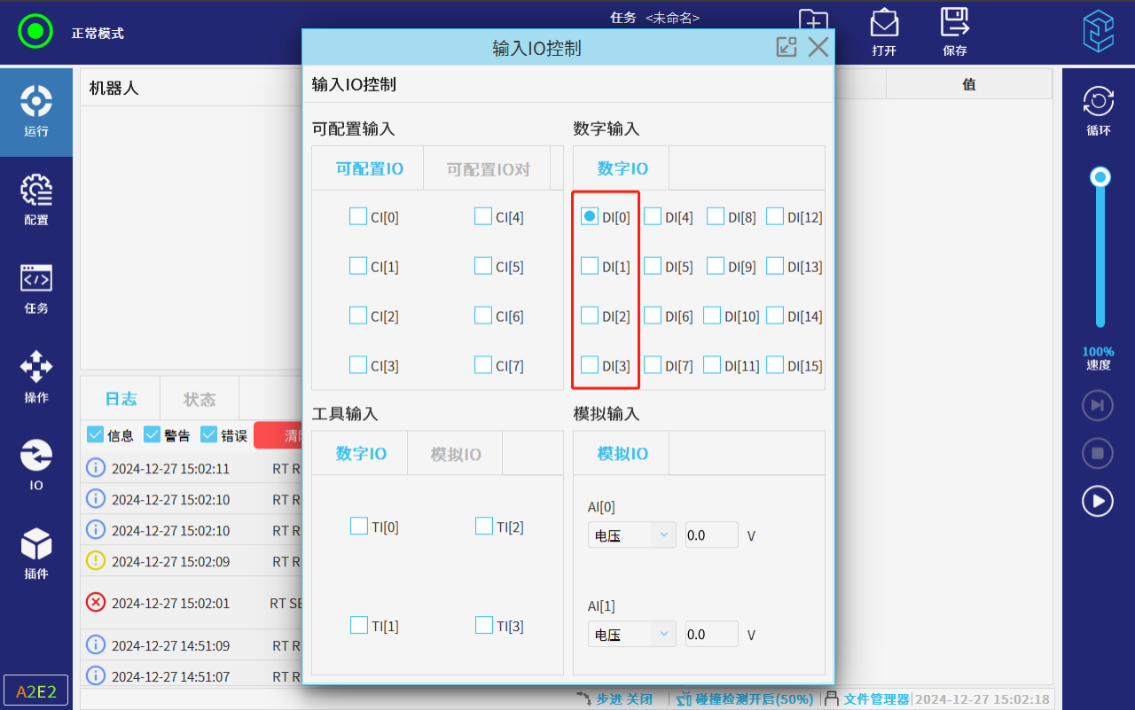 3. DI[0]的信號成功模擬后,在IO監(jiān)控界面也可以看到。對應方框顯示有灰色圓點就代表有信號。