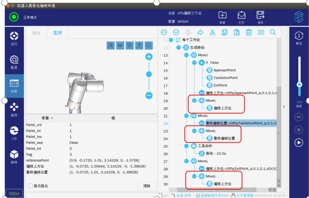 2.2.1將碼垛工藝包里3個運動點位都按照外部偏移值偏移(進入點,工具動作點,離開點)
