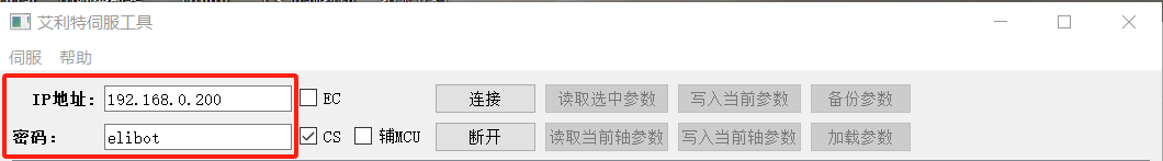 2.輸入對應的IP地址,以及密碼:(cs密碼:elibot),如圖4-5所示:
