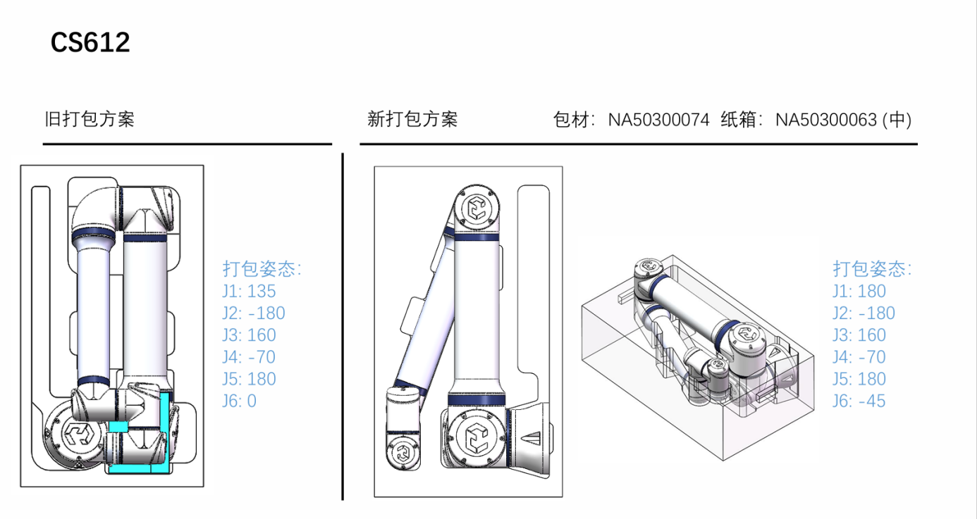 5.運輸過程中需要機器人的2 3軸不要受力,有支撐,合理的打包姿態運輸能能夠有效的避免機器人抖動。打包姿態如圖3-1: