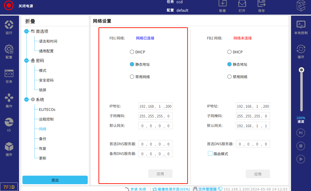機器人做從站,modbus通訊使用機器人控制柜FB1網口或FB2網口,連接控制柜和電腦,