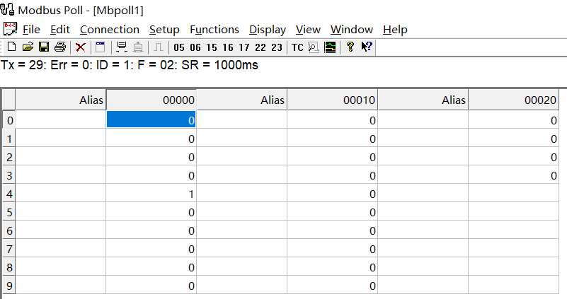 輸入id 1,功能碼04,地址20,數量5(自定義),點擊ok