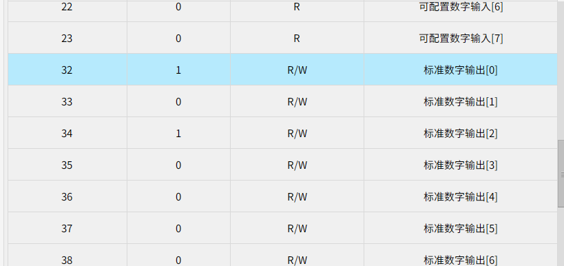 如上圖所示,下述以數字輸入,地址32;數字輸出,地址33;寄存輸入,地址266;寄存器輸出,地址277為例