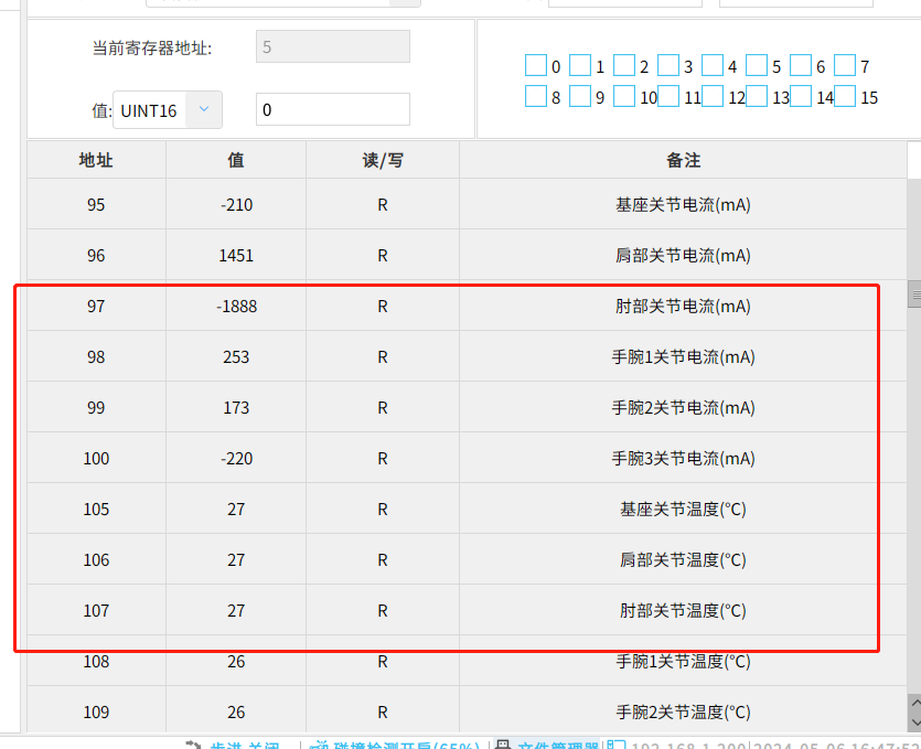 2. 無符號短整型(16 位):用于保存和修改機器人的版本,TCP,系統狀態等信息;也用于映射
