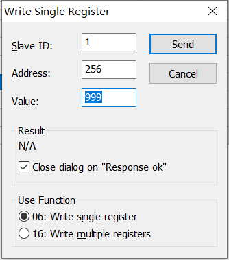 輸入id 功能碼 地址和數量,注意地址不要與上一步設置重復