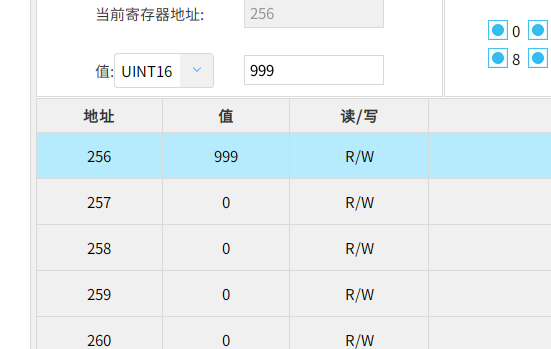 點擊值,輸入數據,即可在modbus slave上查看到寫入的值