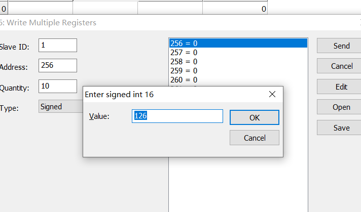 第二種方法:點擊functions --16:write multiple registers,雙擊圖中顯示列表來修改寄存器值