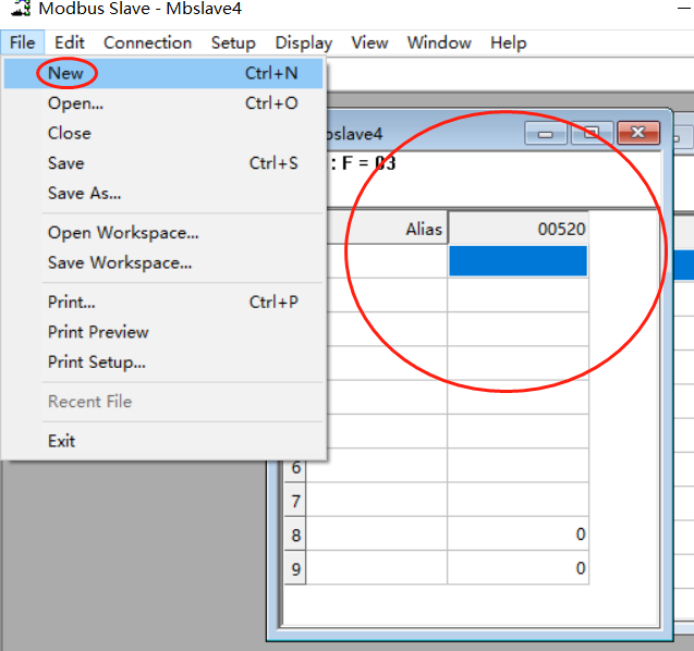 打開modbus slave,可點擊File--new,會出來一根新的監視表,