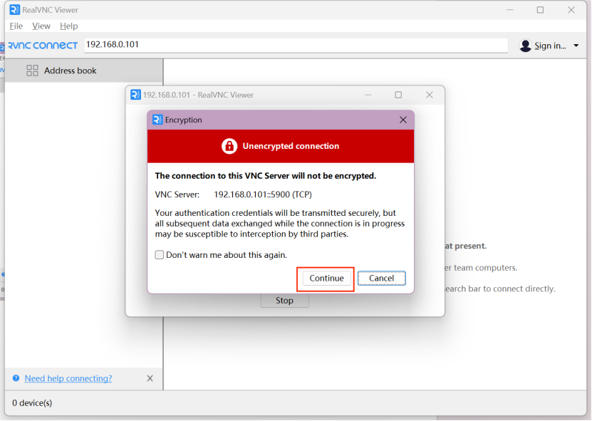 (2) VNC Server 傳送一對(duì)話窗口至客戶端,要求輸入連接密碼(可能為空),以及存取的 VNC Server 顯示裝置。