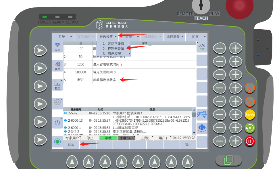 首先在示教器設置斷開選項,路徑:參數設置 - 控制器參數 - 示教器連接狀態  - 修改 - 斷開