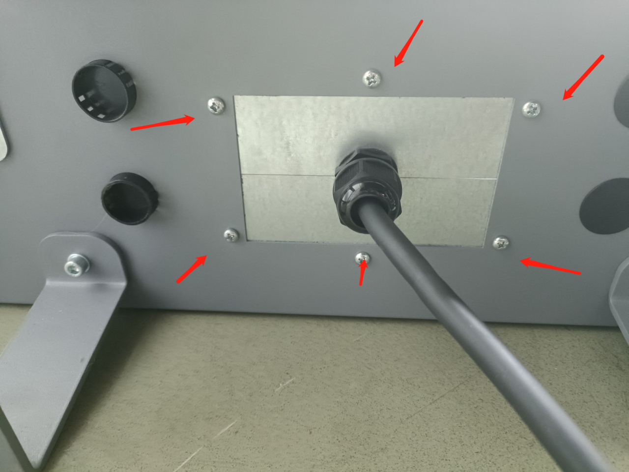將示教器從控制柜中取出,需要把控制器底部的六顆固定螺絲取下,就可以把示教器線纜取出。如圖5。