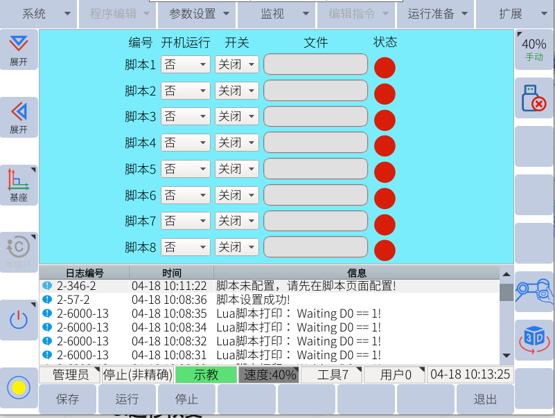 一般使用u盤進行單個lua文件的恢復(導入),先確認u盤中有rbctrl 文件夾且rbctrl文件夾里有luadir這個文件夾且該文件夾下面有lua文件
