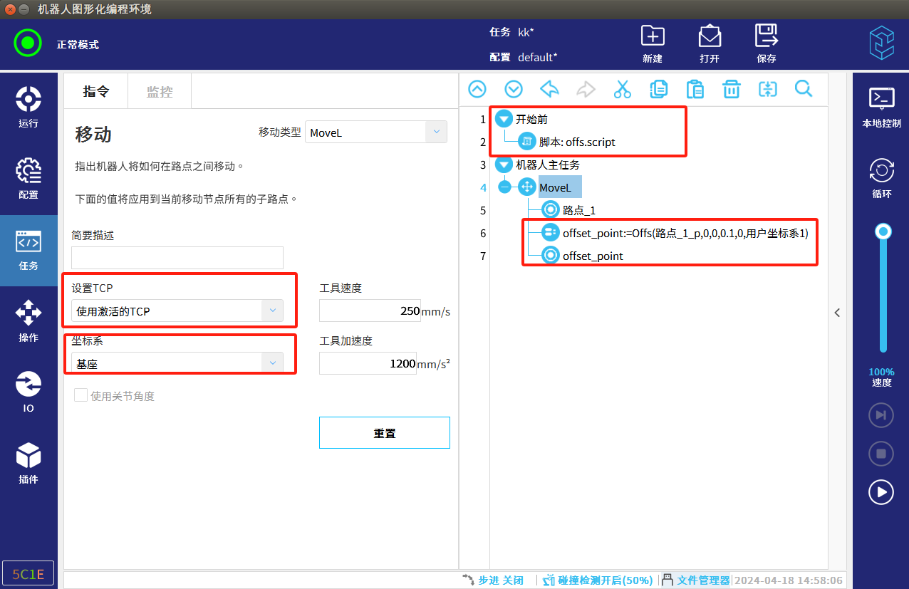 3.4要注意偏移后的點位數據是在那個坐標系下,與移動指令配置中的是否相同。