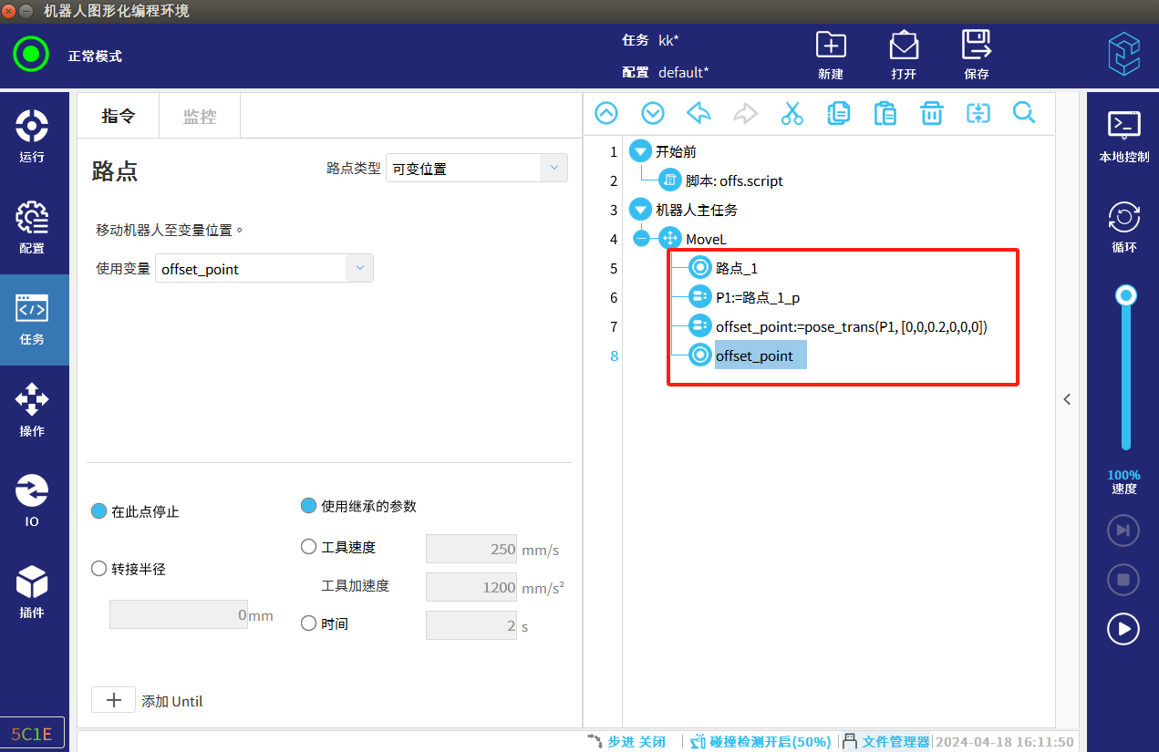可以直接使用路點_1的值進行加減賦值給offset_point,實現點位偏移。
