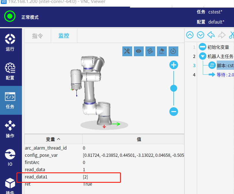 運行腳本后可在調試助手端接收到機器人發送的數值