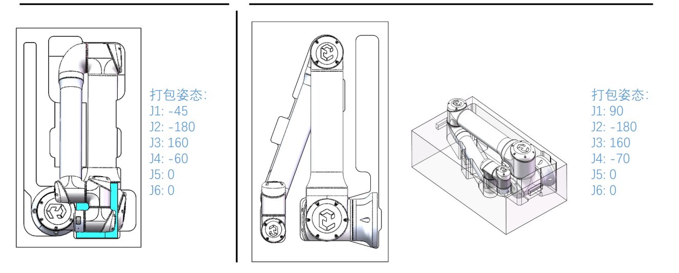 打包姿態角度:J1: -45 J2: -180 J3: 160 J4: -60 J5: 0 J6: 0