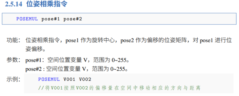 -- 計算出 v1 在工具坐標系中偏移 {50,0,0,0,0,0} 后的值,并將結果存儲在 v2_tool 中